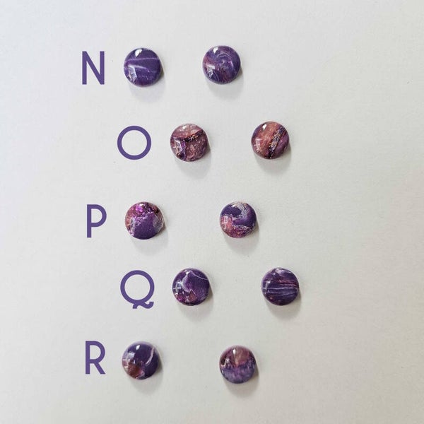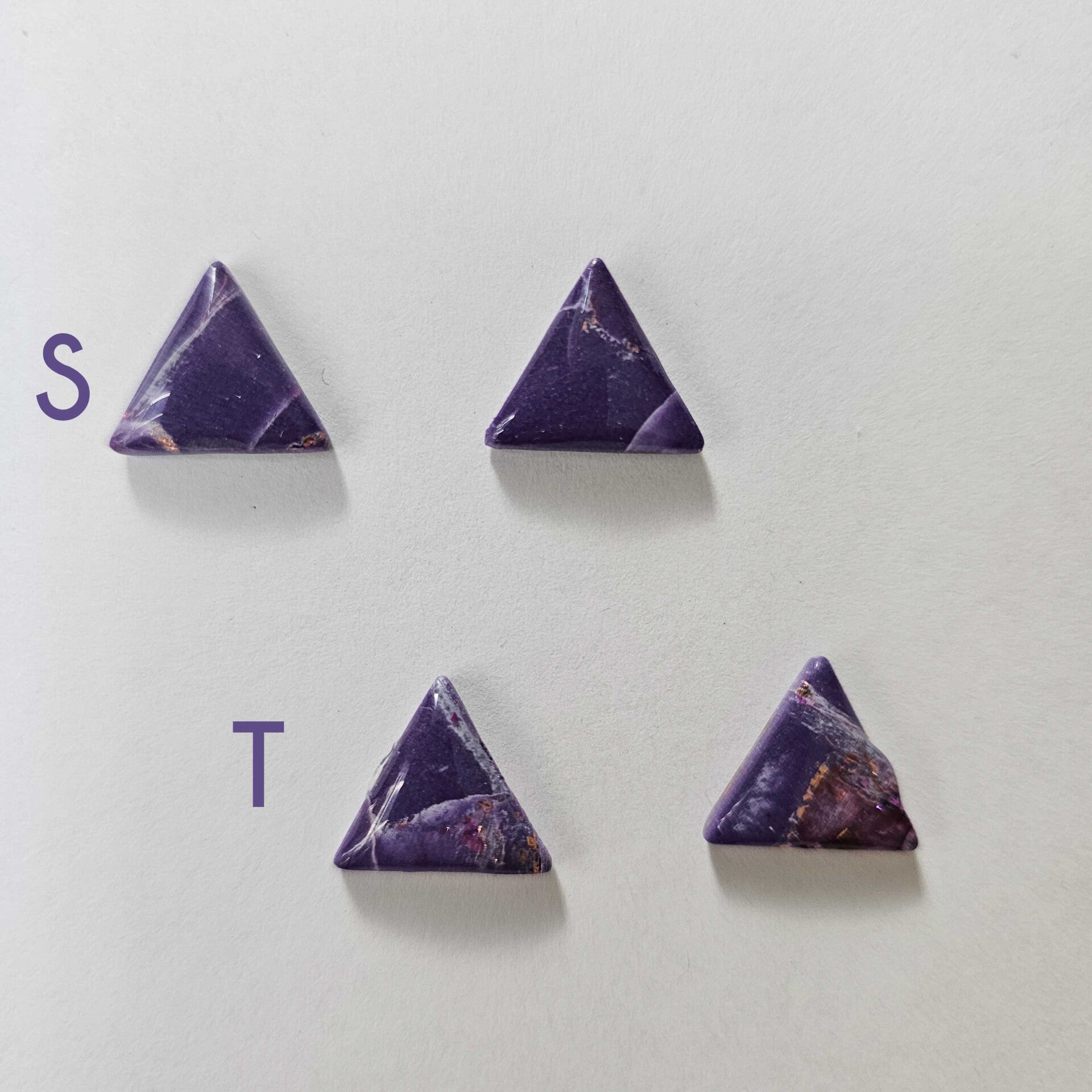 Clous d'oreilles en acier inoxydable et pâte polymère.